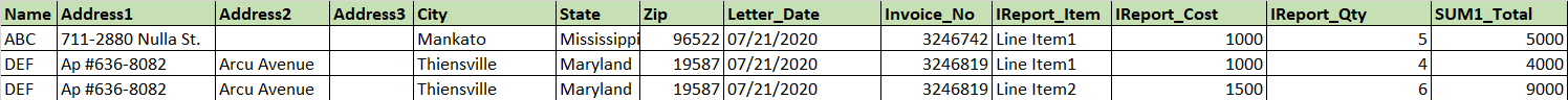 Table tags: {#tableid}{/tableid} is the tag for the dynamic table. Notice the tags {#IReport} {/IReport} for the IReport table with table columns