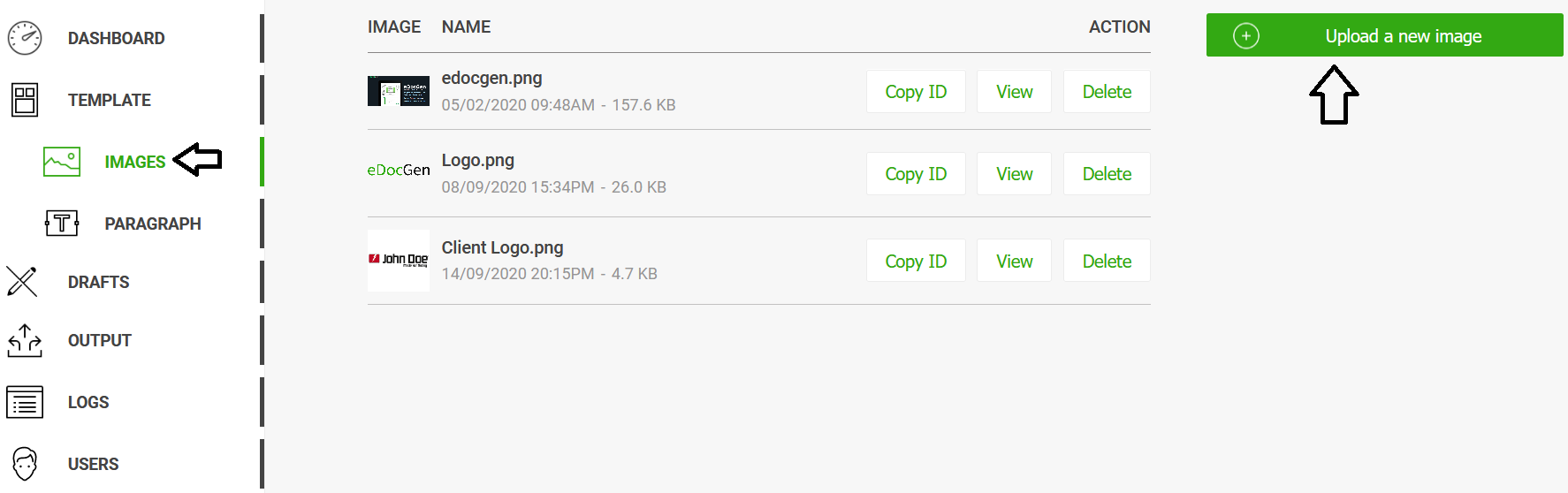 The first step is to add dynamic tags in the template at the location where you want the merged images to appear.